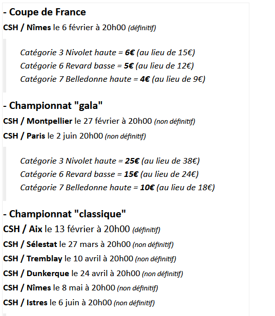Tarifs préférentiels sur les matchs de la saison de 4€ à 25€ l’entrée, selon match & catégorie.
